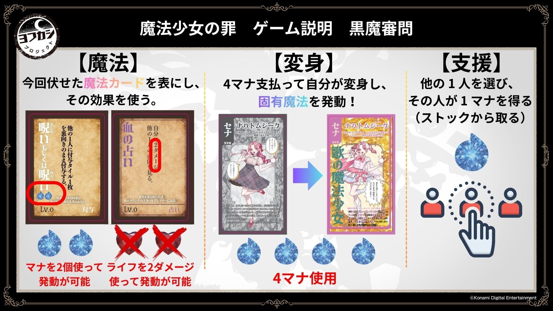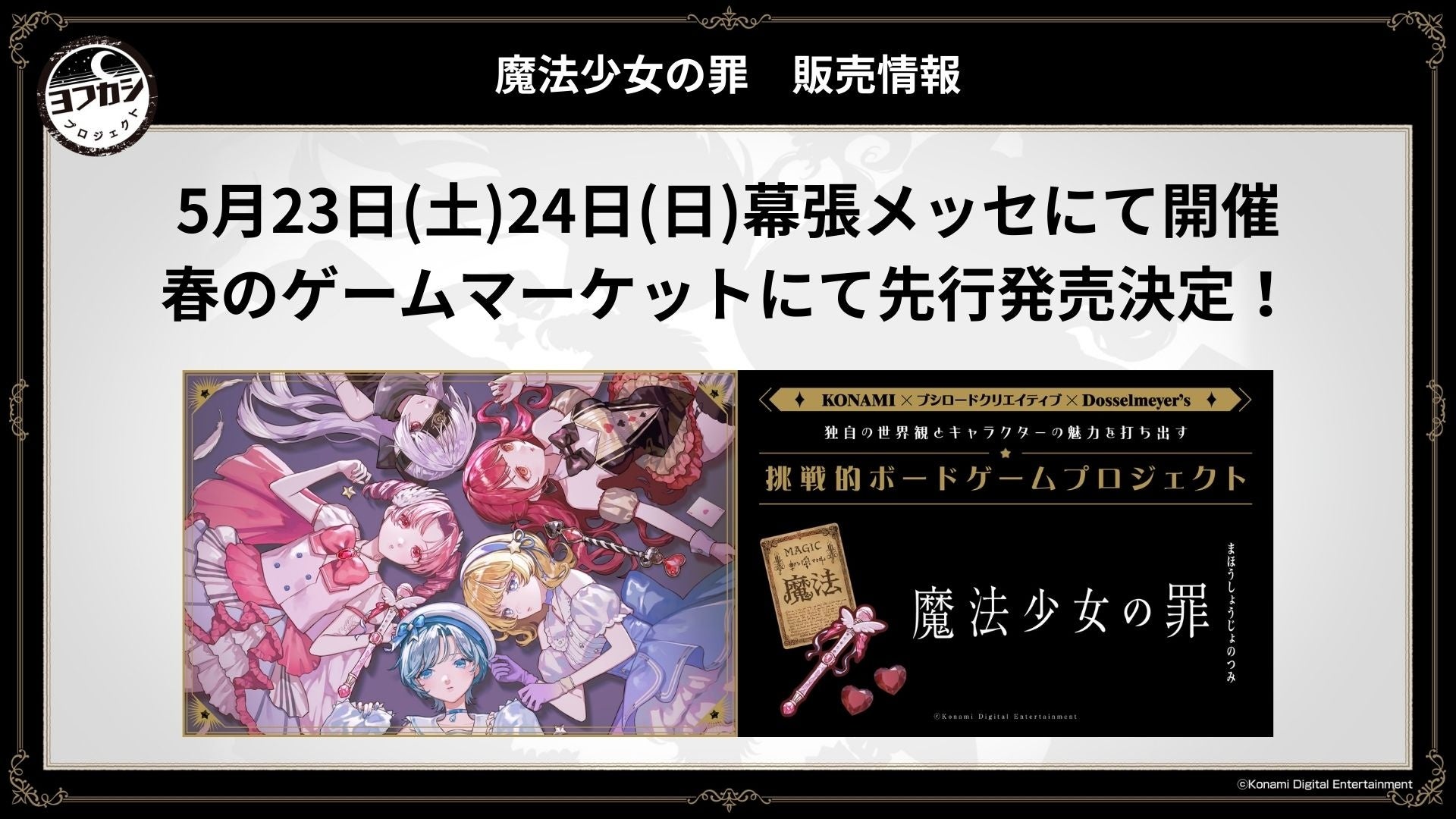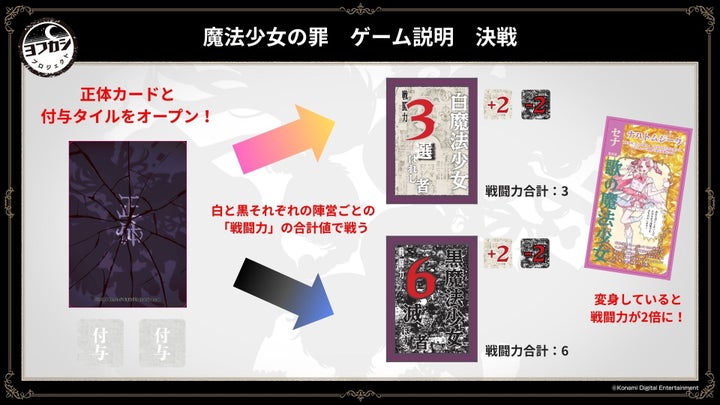 また、新作ボードゲーム『魔法少女の罪』の詳細も発表され、正体秘匿バトルロワイヤルゲームとして紹介された。