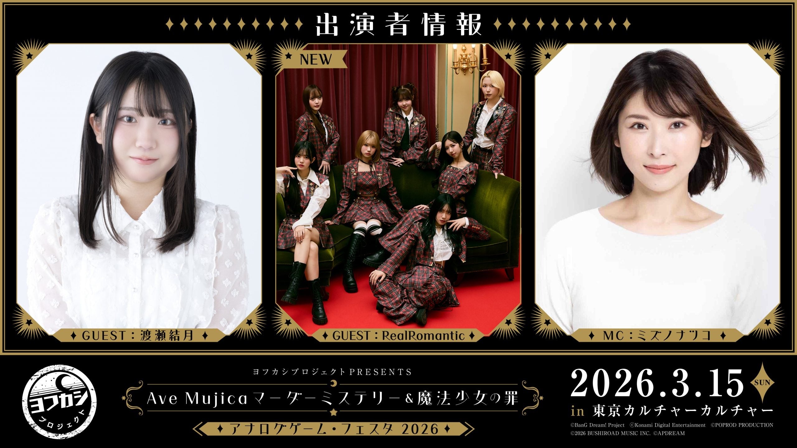 • 2026年3月15日に「ヨフカシプロジェクトPRESENTS Ave Mujica マーダーミステリー&魔法少女の罪 アナログゲーム・フェスタ2026」を開催。