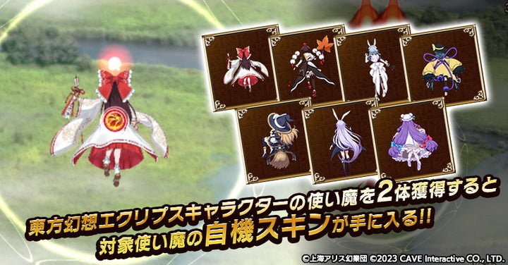 - ログインボーナスで★5「射命丸文」がもらえる。コラボガチャでは新ショットが登場、自機スキンも追加。