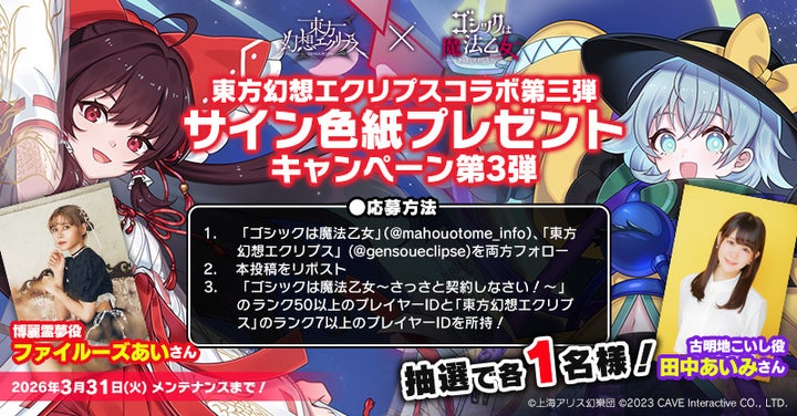 - 『ゴシックは魔法乙女』と『東方幻想エクリプス』のコラボイベント後篇が3月19日より開催。