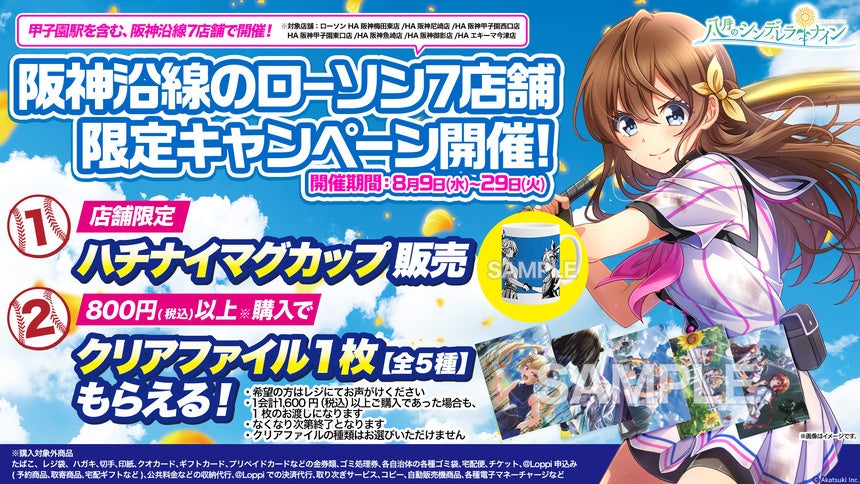 また、阪神沿線のローソン7店舗では限定キャンペーンが行われ、甲子園駅周辺ではハチナイのうちわが配布されます。