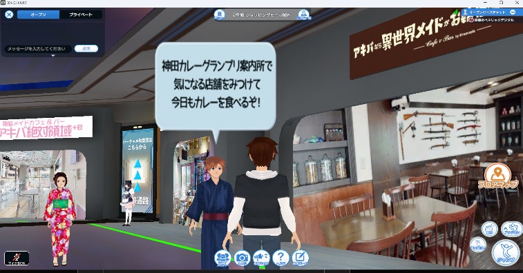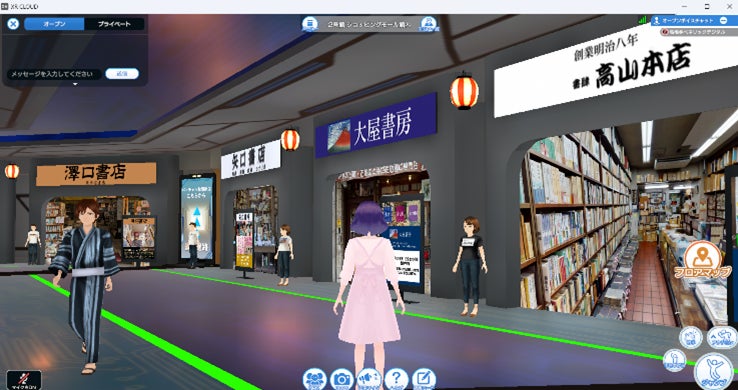 このショッピングモールは仮想空間であり、スマートフォンやパソコンからアバターで入場し、実際の店舗を360度カメラで見ることができます。