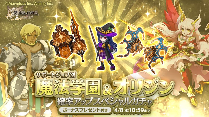 また、「ジョブ別 斑鳩&オリジンの魔神器確率アップスペシャルガチャ」や「サポートジョブ別 魔法学園&オリジン確率アップスペシャルガチャ」、「ジョブ別 サヴァイブ学園確率アップガチャ」が販売中です。