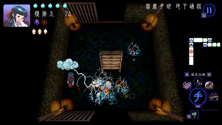 行方不明の兄を探す巫女”よの”を操作し、間取りが変化する屋敷で”音”を駆使してモノノケを倒す。