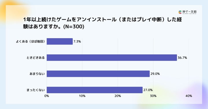 Lighthouse Studioが実施したスマホゲームユーザー300人への意識調査によると、約5割が1時間以内の初期離脱を経験。