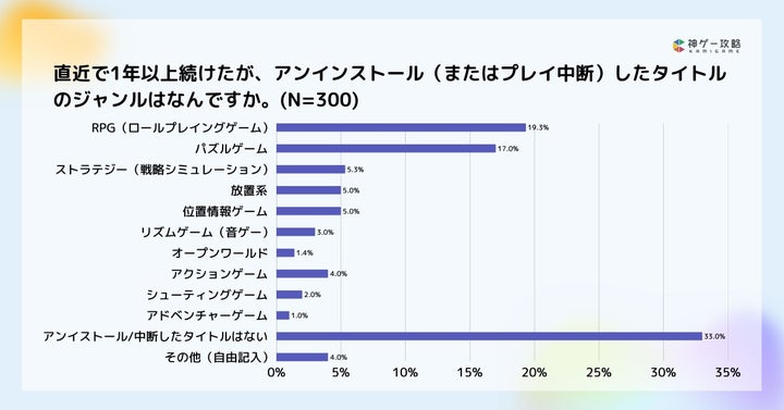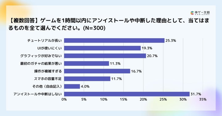 主な原因は「チュートリアルが長い」で、特にパズルゲームとRPGで顕著。