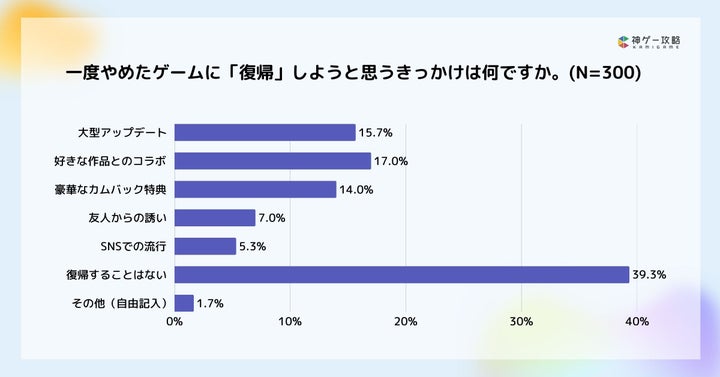 復帰のきっかけは「コラボ」や「大型アップデート」で、復帰時には「追いつきやすさ」が求められている。
