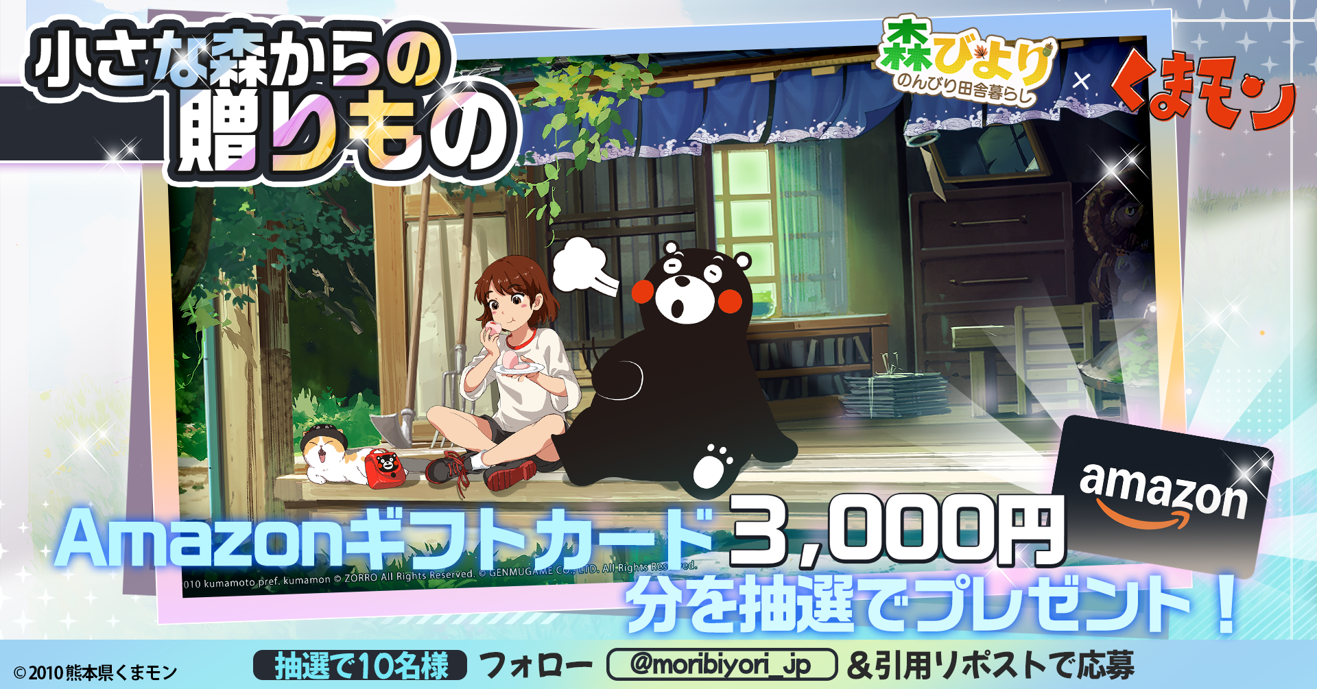 - 『森びより – のんびり田舎暮らし』と「くまモン」のコラボが3月31日より開始。