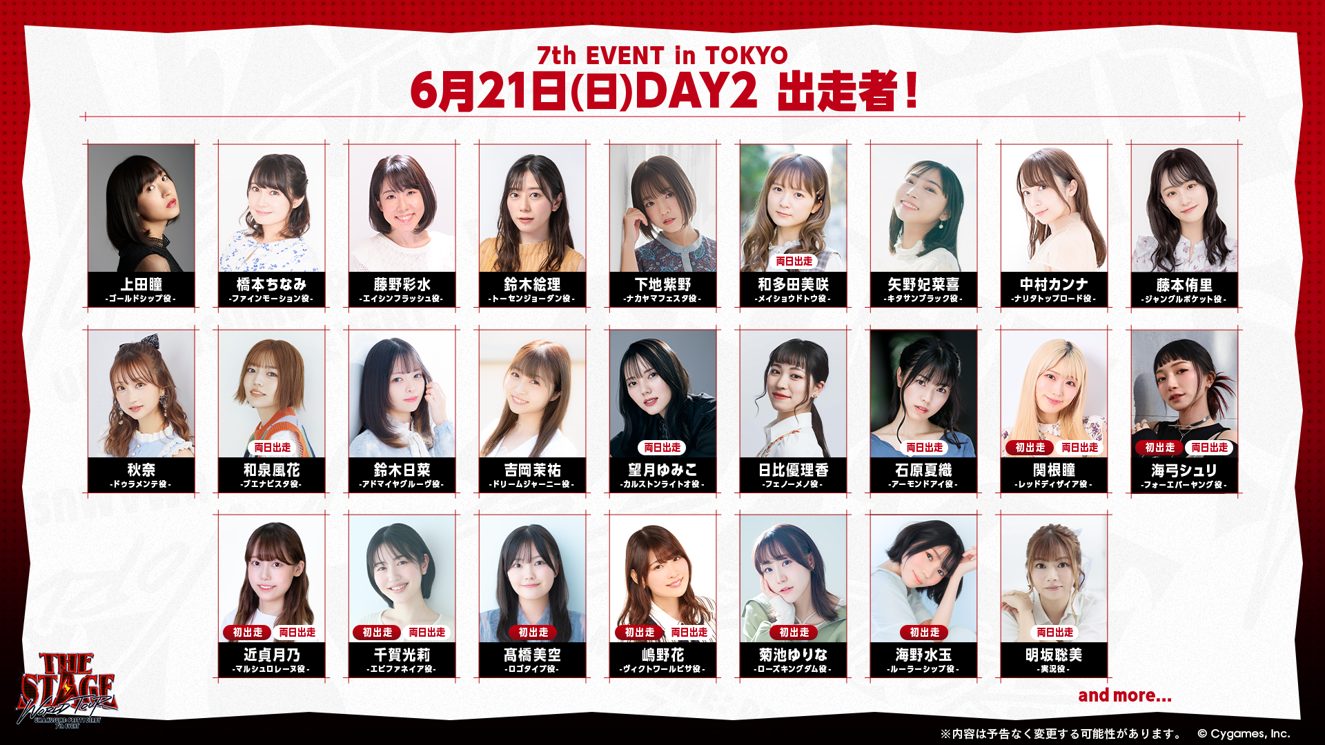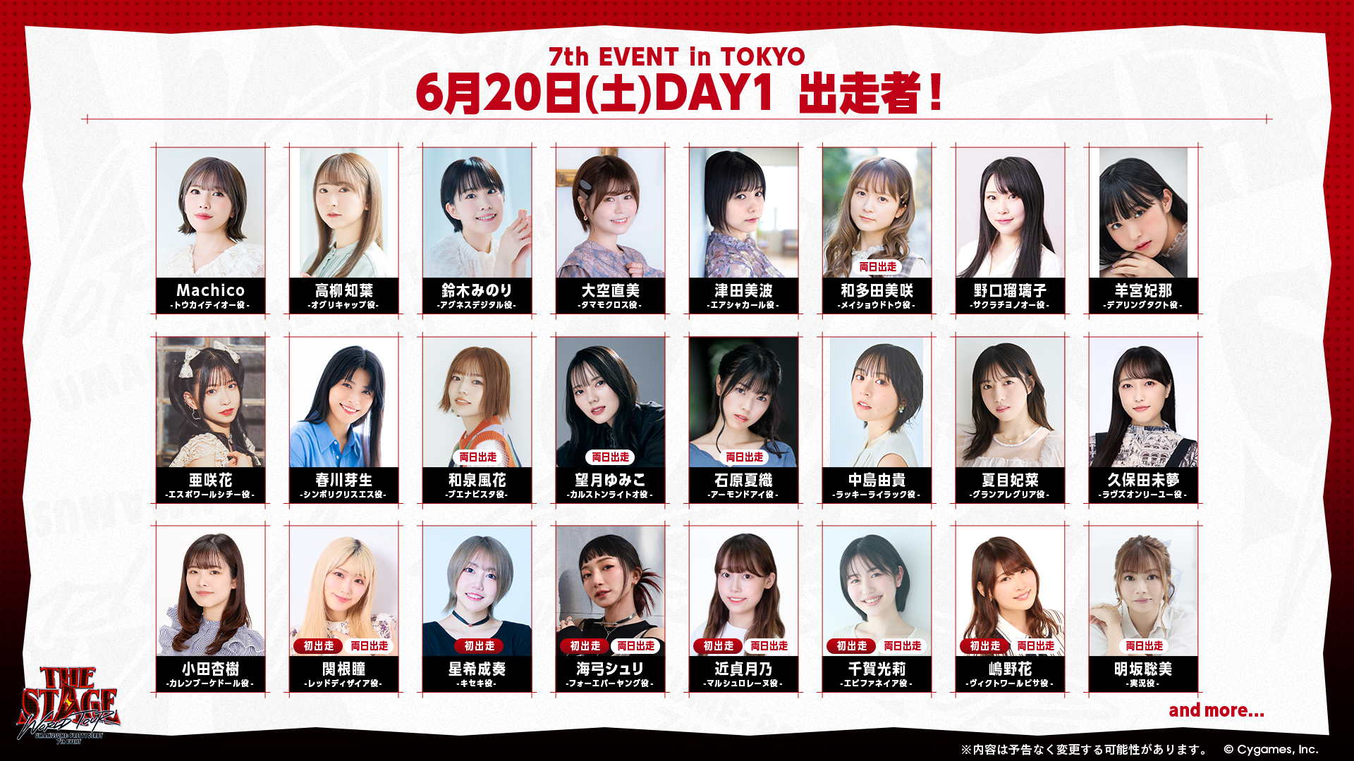 - Machico、高柳知葉、鈴木みのり、大空直美、津田美波、和多田美咲、野口瑠璃子、羊宮妃那、亜咲花、春川芽生、和泉風花、望月ゆみこ、石原夏織、中島由貴、夏目妃菜、久保田未夢、小田杏樹、関根瞳、星希成奏、海弓シュリ、近貞月乃、千賀光莉、嶋野花、明坂聡美、上田瞳、橋本ちなみ、藤野彩水、鈴木絵理、下地紫野、矢野妃菜喜、中村カンナ、藤本侑里、秋奈、鈴木日菜、吉岡茉祐、日比優理香、髙橋美空、菊池ゆりな、海野水玉