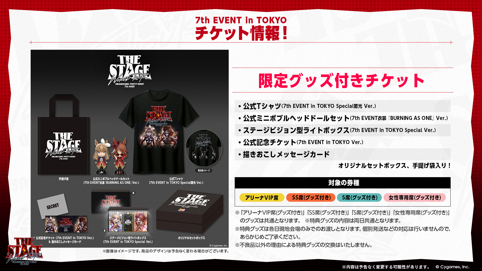 - チケットのオフィシャルWEB最速先行が開始、様々な席種とグッズ付きチケットを販売。