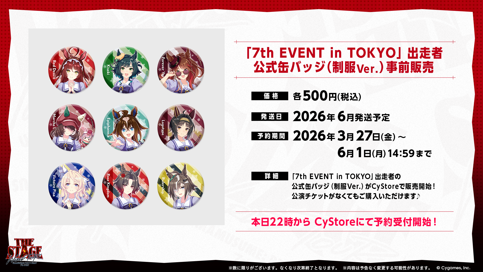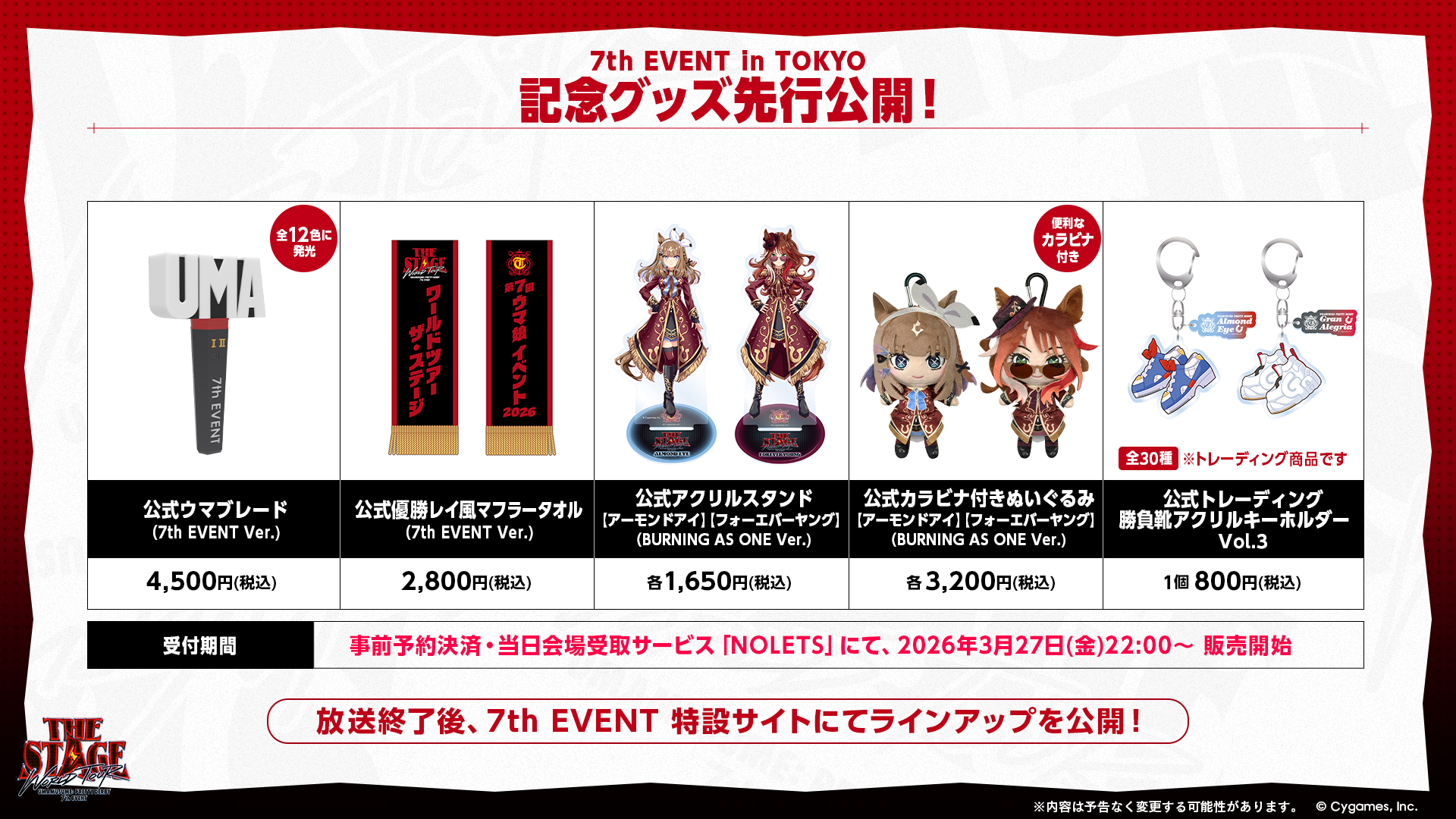 Cygamesは、クロスメディアコンテンツ『ウマ娘 プリティーダービー』の7th EVENT WORLD TOUR 「THE STAGE」 in TOKYOを2026年6月20日(土)・21日(日)に有明アリーナで開催する。