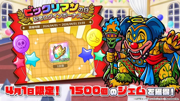 4月1日は「ビックリマンの日」を記念し、1500ジェムとシャインスター150個を獲得できるログインボーナスを実施する。