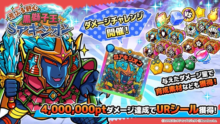 また、ダメージチャレンジイベント「荒ぶる野心 黒獅子王・Sアキシオン」も開催され、1日限定のログインボーナスやアプリペイのお得な新商品も登場。