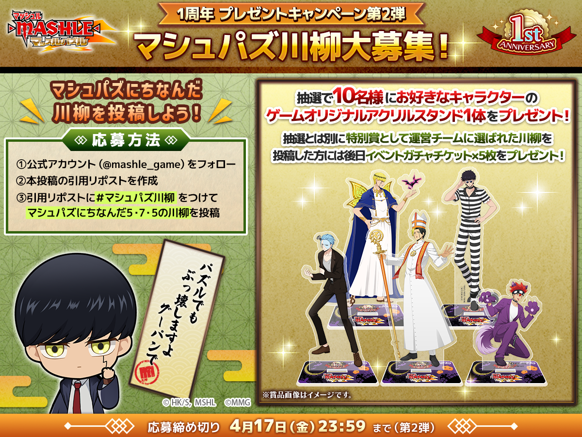 - 『マッシュル-MASHLE-マッスルパズル』が1周年を記念したイベントを開催。