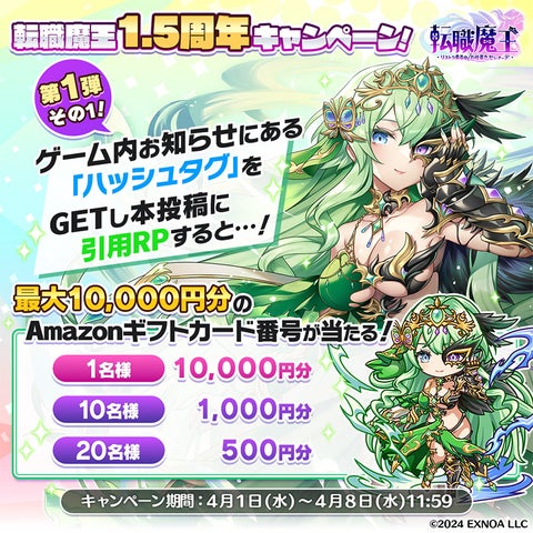 DMM GAMESが運営する『転職魔王~リストラ勇者のお仕置きセレナーデ~』が、2026年4月1日に1.5周年記念キャンペーンを開始しました。