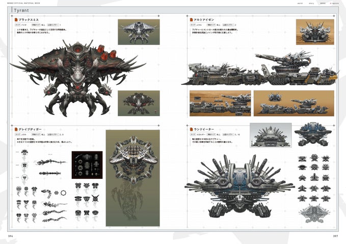 初期案や衣装、武器の設定画、バーストスキルの絵コンテなど貴重な資料も掲載。