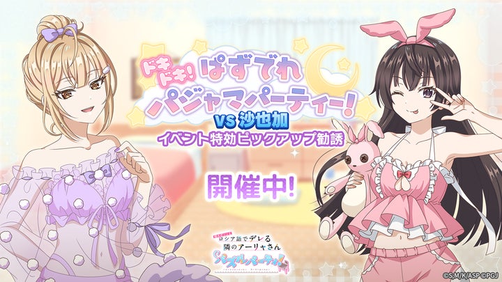 TVアニメ『時々ボソッとロシア語でデレる隣のアーリャさん』初のスマホ向けパズルゲーム『時々ボソッとロシア語でデレる隣のアーリャさん パズルパーティ!』にて、ネグリジェ姿の有希と乃々亜が登場。