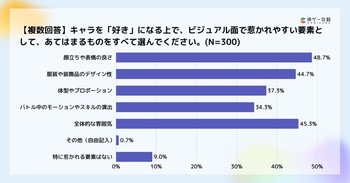 - 新しいキャラクター入手で最も重視するのは「ビジュアル・デザイン(見た目の好み)」。