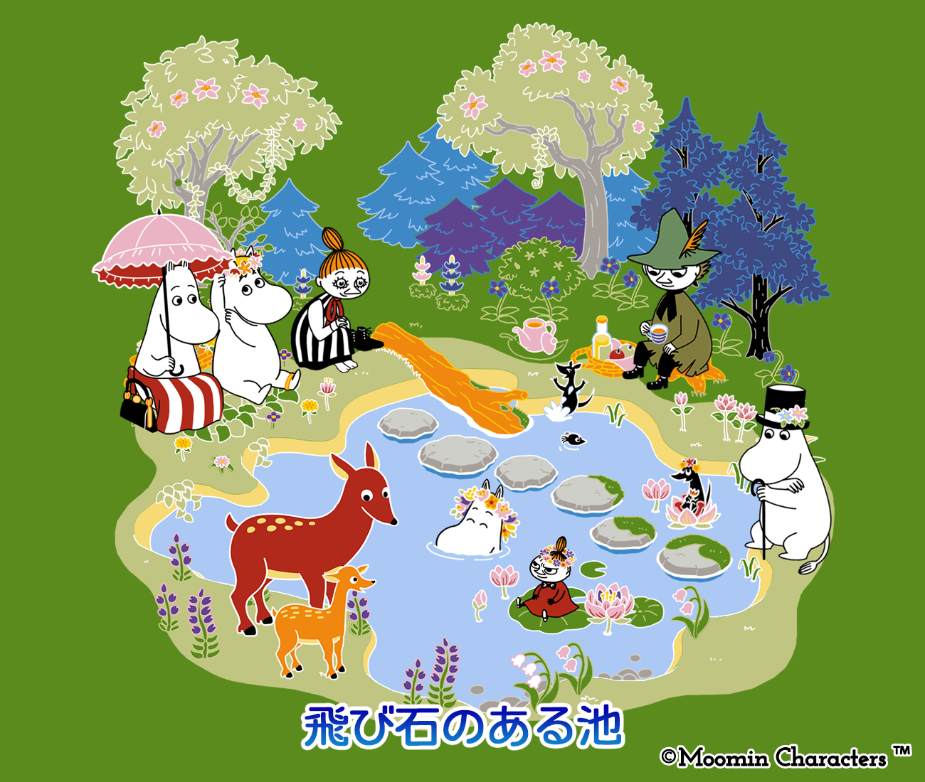 ムーミン箱庭アプリ、4月イベント!限定デコ「飛び石のある池」