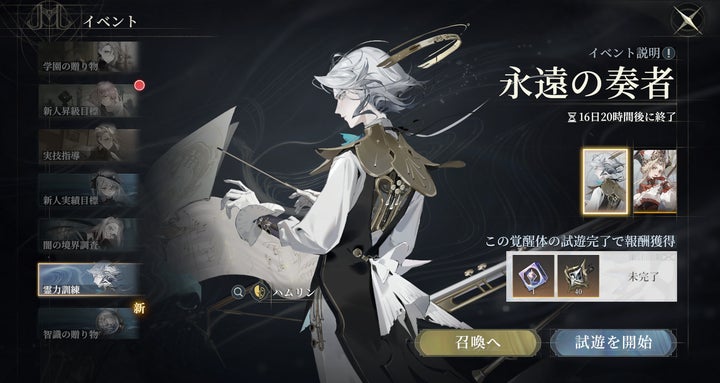 イベントでは、ステージクリアで報酬が得られる「無形の交響曲」や、ハムリンのお試しプレイができる「永遠の奏者」が用意されている。