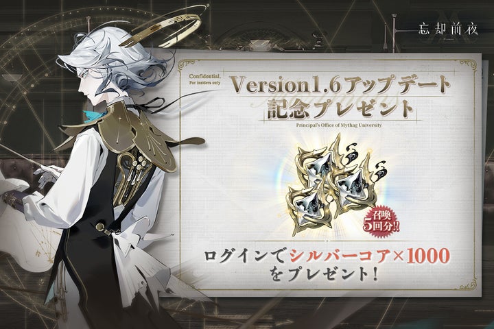 - Version1.6アップデート記念キャンペーンとして、ログインボーナス、毎日アイテム配布、限定ミッションなどを実施。