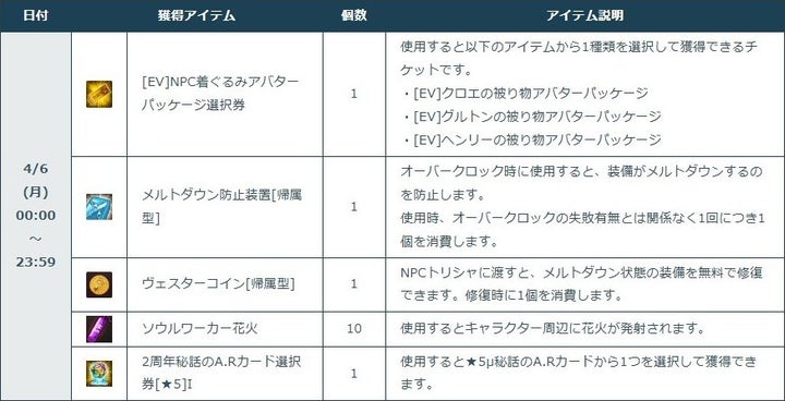 - 4月6日の10周年当日に、ログインしたプレイヤーに特別なアバターなどをプレゼント。