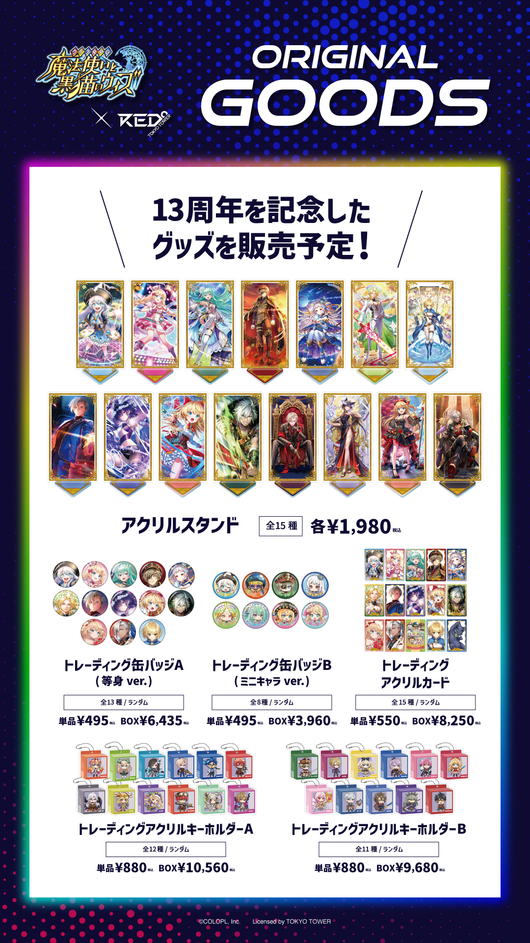 オリジナルグッズは「13th Anniversary」イラストを使用し、購入特典も用意。