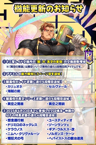 - 『クレイヴ・サーガ 神絆の導師』にて「十二聖レイド アドミル挑戦応援キャンペーン」が開催。