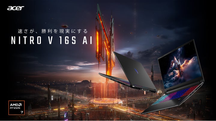日本エイサー株式会社は、ゲーミングブランド「Nitro(ニトロ)」より、AI処理に対応した16インチゲーミングノートPC「Nitro V 16S AI」2機種と、15.6インチモデルを発表。