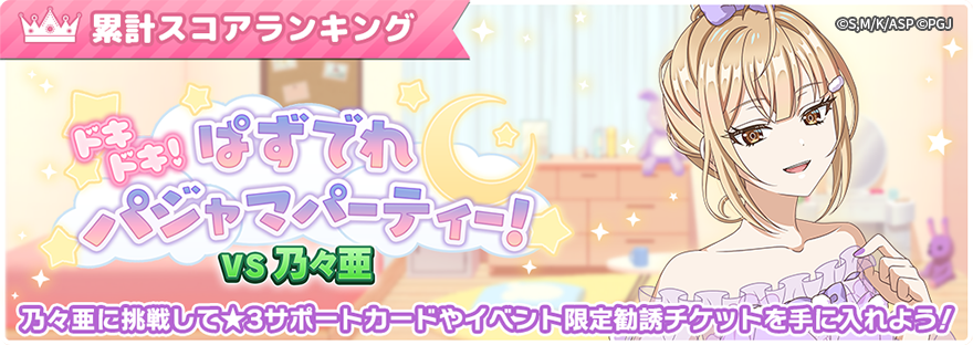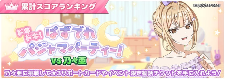 - 2026年4月11日より累計スコアランキングイベント「ドキドキ!ぱずでれパジャマパーティー!VS乃々亜」が開催。