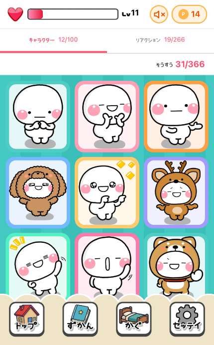 - キャラクターのお世話、部屋のカスタマイズ、コレクション機能など、手軽に楽しめる要素が満載。