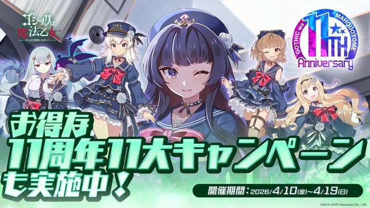 株式会社ケイブが配信するシューティングゲームアプリ『ゴシックは魔法乙女~さっさと契約しなさい!~』(ごまおつ)が、サービス開始11周年を記念して、11大キャンペーンとイベント『ジルバラード建国祭 追憶と絆の真影』を開催中です。