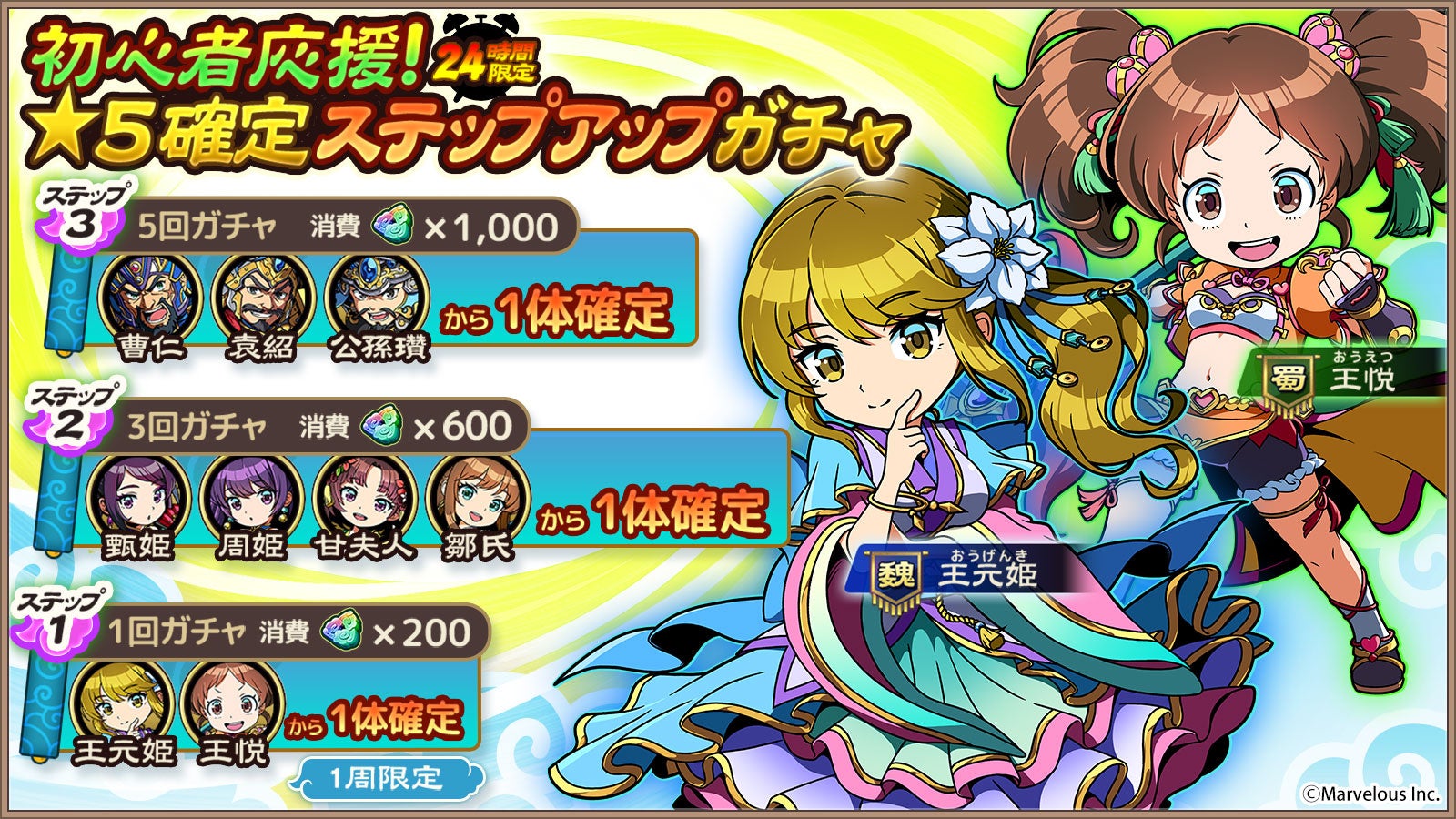 また、初心者向けの「★5確定ステップアップガチャ」や、新アイテム「経験値交換の書」が登場し、全プレイヤーに配布される。