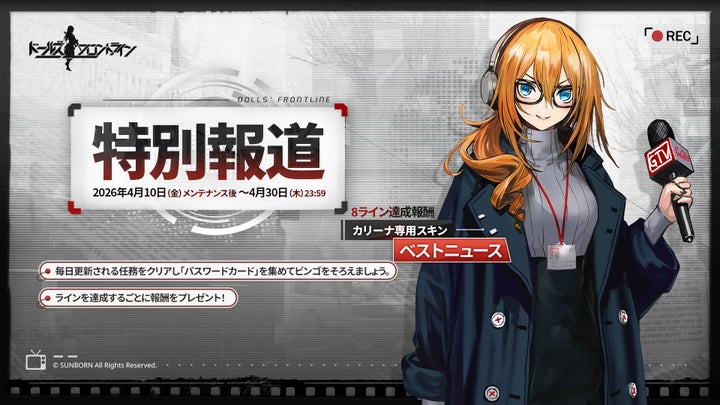 また、ビンゴイベント「特別報道」が4月10日(金)メンテナンス後より開催され、カリーナ専用スキン「ベストニュース」が獲得できる。
