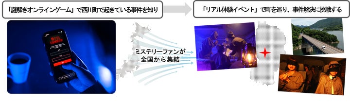 - ARG手法を採用し、オンラインゲームからリアルな観光へ誘導。参加者は探偵として事件解決に挑む。