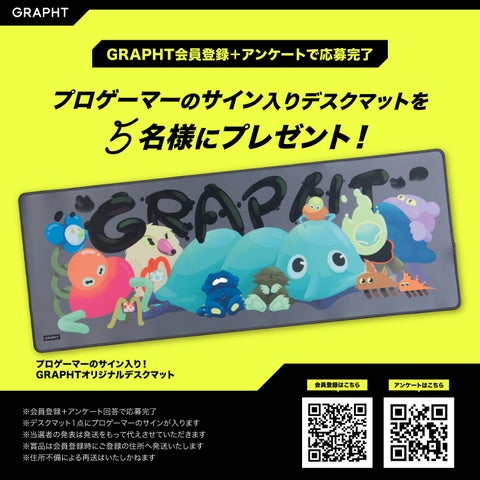 プロゲーマーサイン入りデスクマットが当たるキャンペーンも実施する。