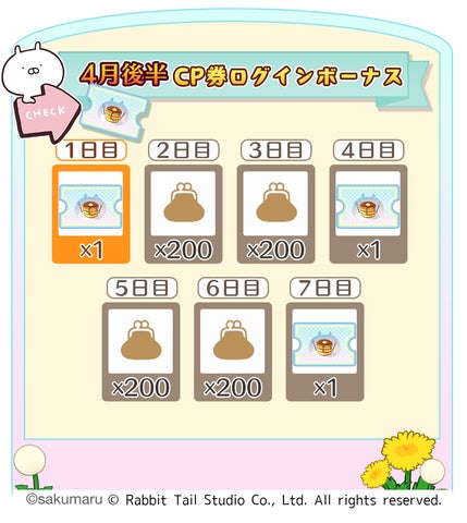 また、旬の具材である「かつおのたたき」と「グリンピース」が手に入るログインボーナスや、CP券がもらえるログインボーナスも実施されます。