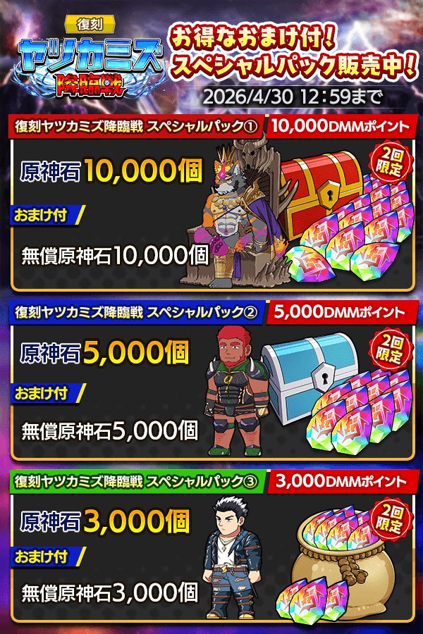 - 『クレイヴ・サーガ 神絆の導師』にて「ヤツカミズ降臨戦」が復刻開催。