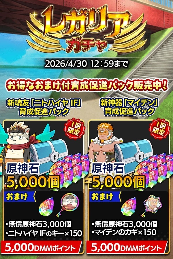 新キャラ「ニトハイヤ IF」と「マイデン」が登場する「レガリアガチャ」も開催され、それぞれ超神絆スキルとEXCEEDスキルを持つ。
