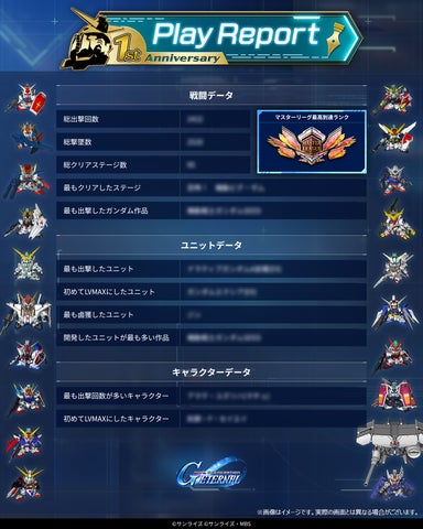 1st Anniversary Play Reportも公開され、自分のプレイ状況を振り返ることも可能です。