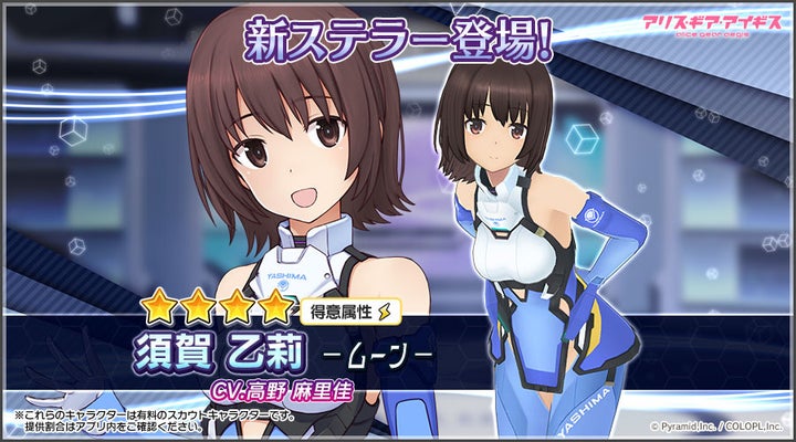 スマートフォン向けゲーム『アリス・ギア・アイギス』にて、新ステラーキャラクター「須賀 乙莉【ムーン】」が登場。