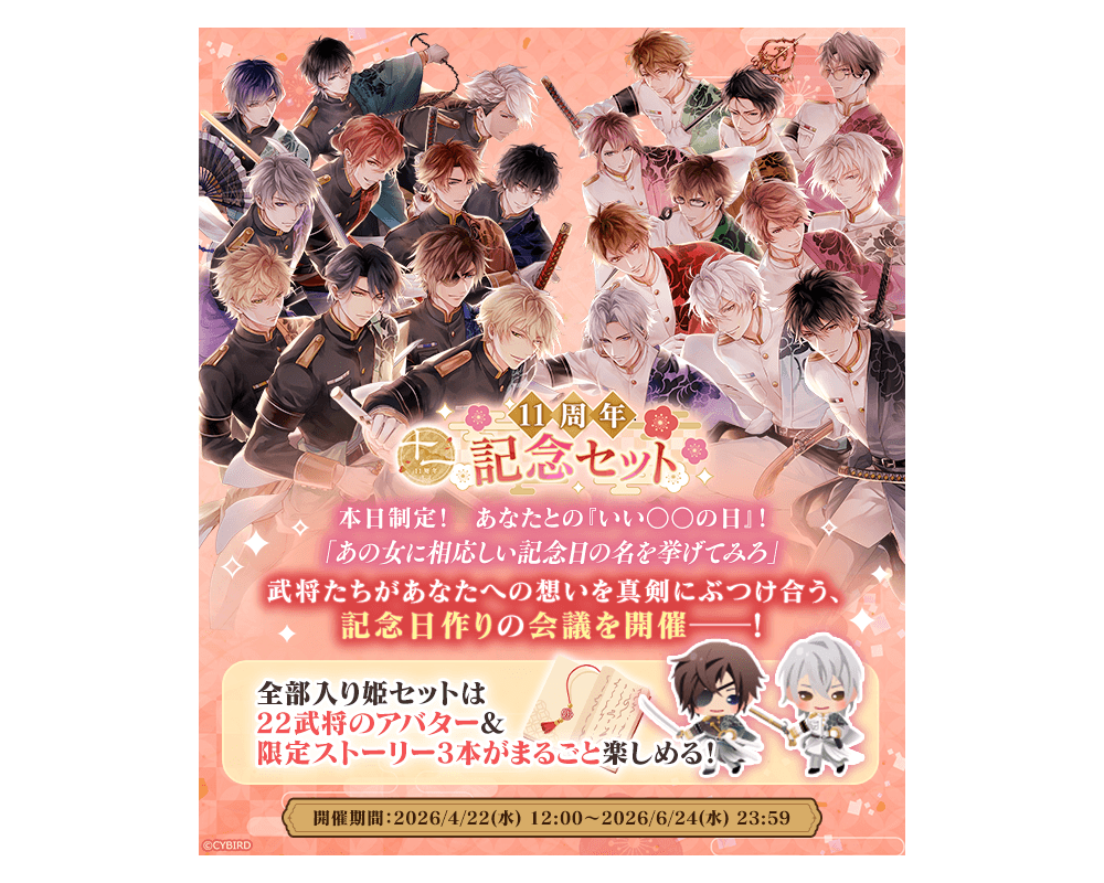 - 『イケメン戦国 時をかける恋』11周年を記念した特設ページが『イケメン戦国 時をかける恋 -永縁-』アプリ内で公開。