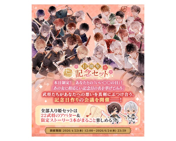 全世界で累計4,500万会員を誇る恋愛ゲーム「イケメンシリーズ」の『イケメン戦国 時をかける恋』が、2026年6月22日に11周年を迎えます。
