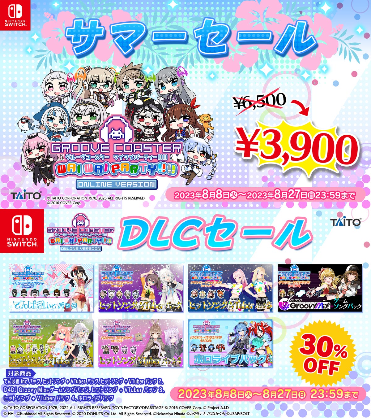 株式会社タイトーは、本日8月10日にNintendo Switch™ダウンロード専用ソフト『グルーヴコースター ワイワイパーティー!!!!』のアップデートを実施しました。
