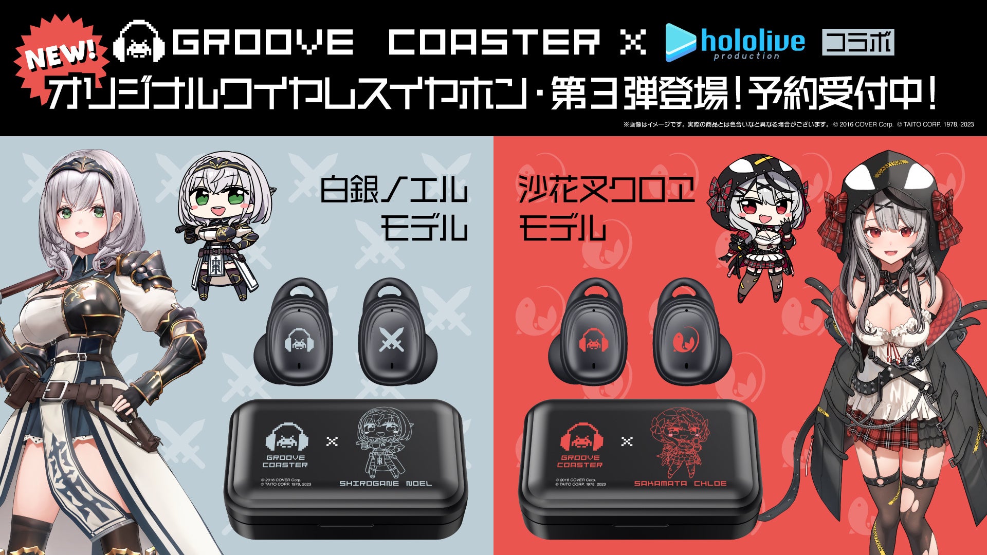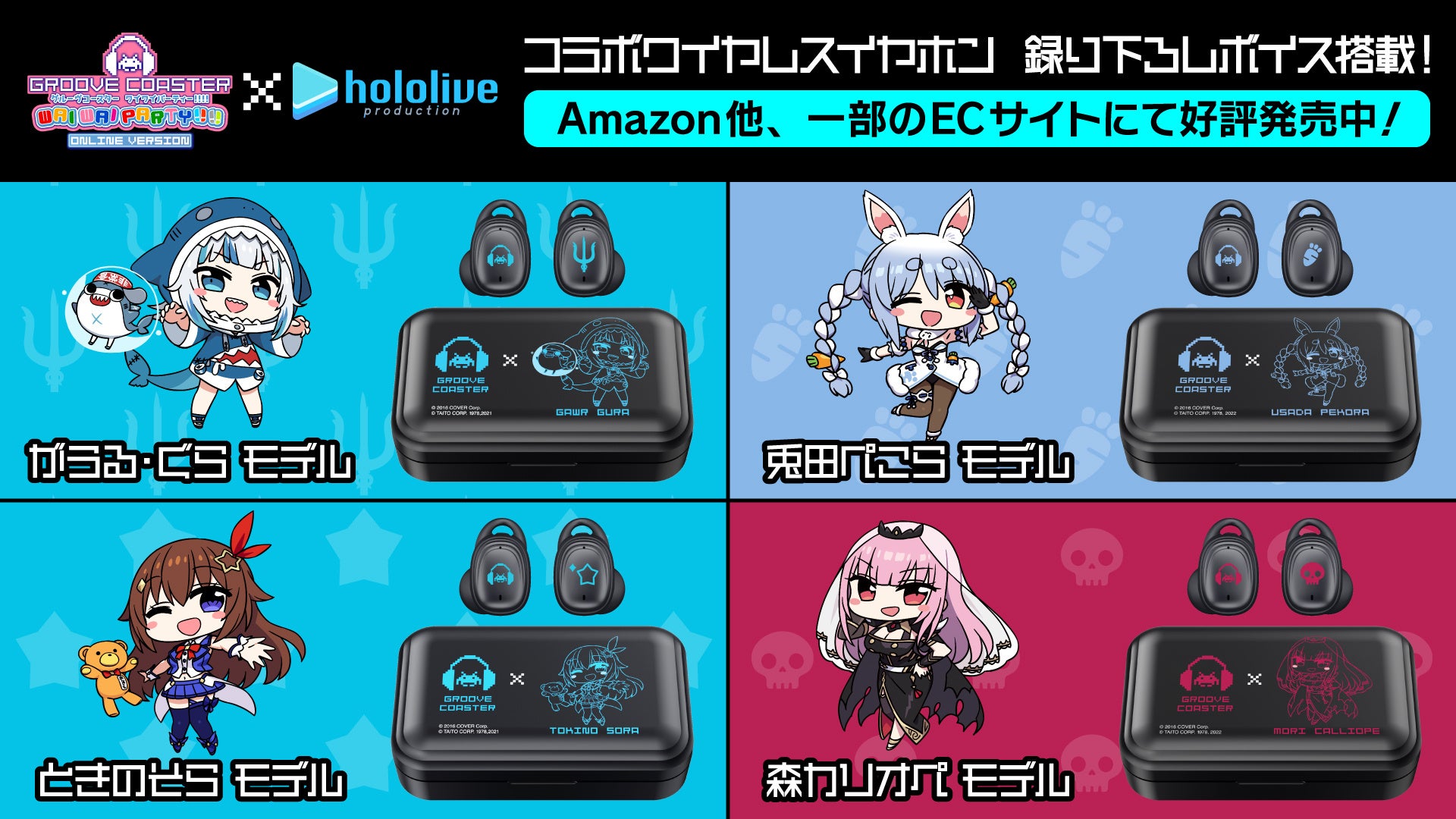『グルーヴコースター ワイワイパーティー!!!!』無償アップデートでホロライブの人気曲とVTuberが登場!さらにコラボワイヤレスイヤホンも発売決定!
