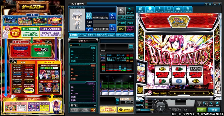 最新機種から往年の名機まで実機を忠実に再現し、最高設定での遊技やアバター、イベントも楽しめる。