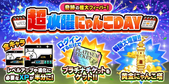 ポノス株式会社が提供するスマホゲーム『にゃんこ大戦争』にて、期間限定イベント「超水曜にゃんこDAY」が2026年4月22日に開催されます。
