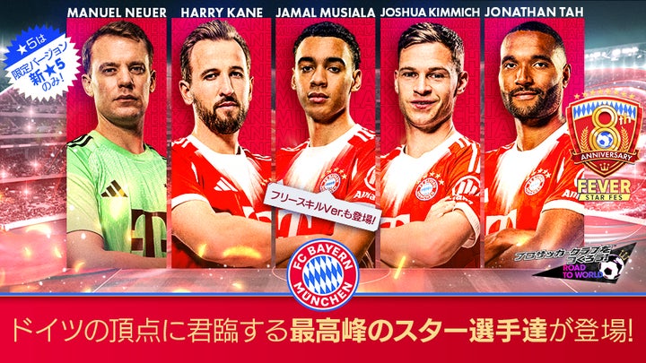 2026年4月22日より、FCバイエルン・ミュンヘンのスーパースターが新★5選手として登場する「8th Anniversary FEVER STAR FES」が開催され、「マヌエル・ノイアー」や「ハリー・ケイン」などの選手が登場します。