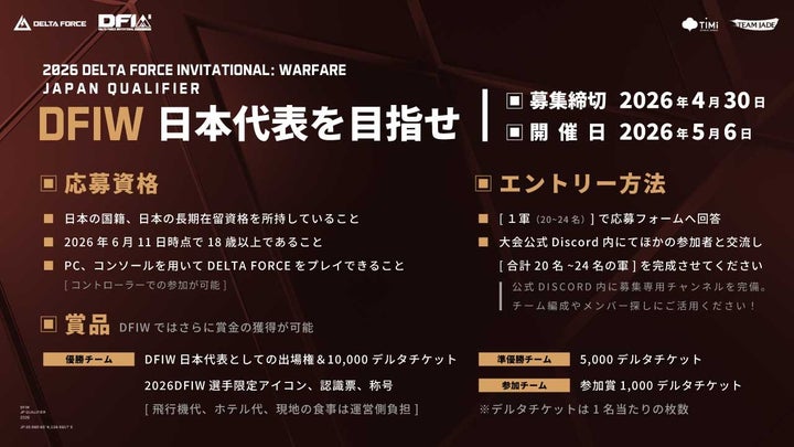 • 6月に世界大会「Delta Force Invitational: Warfare 2026」の日本予選開催、日本代表を選出