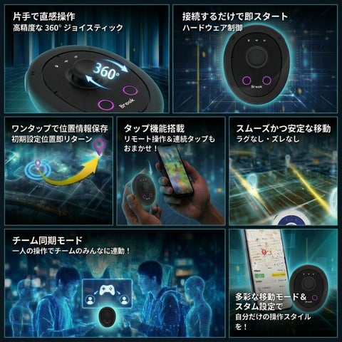 ワンタップでの位置情報保存、チーム同期モード、自動捕獲機能など、様々な機能を搭載。